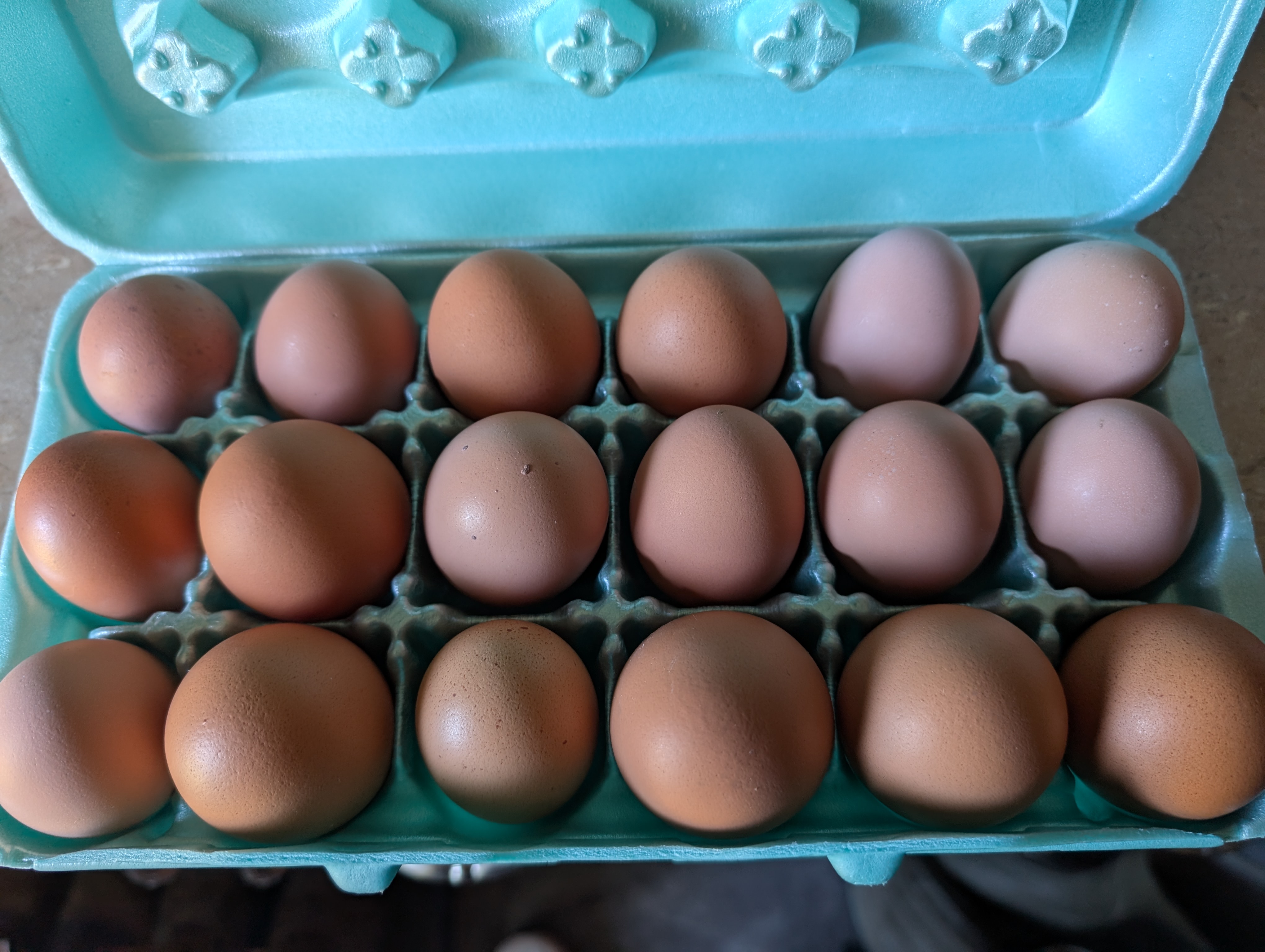 We offer brown and white eggs. Our chickens are cared for and loved. The eggs are laid clean so you will be getting a non washed egg and has not been refrigerated.
